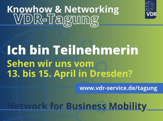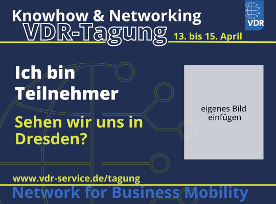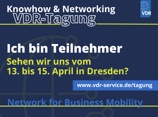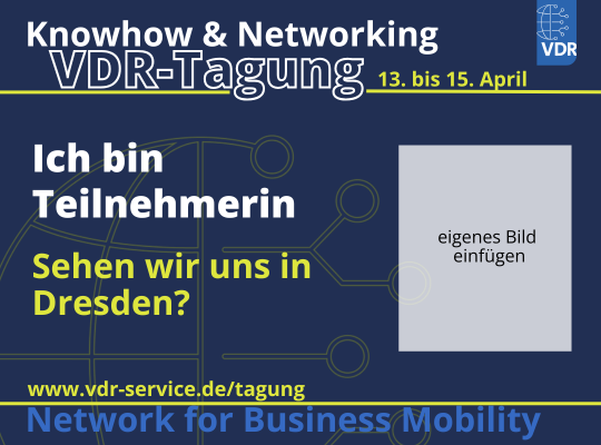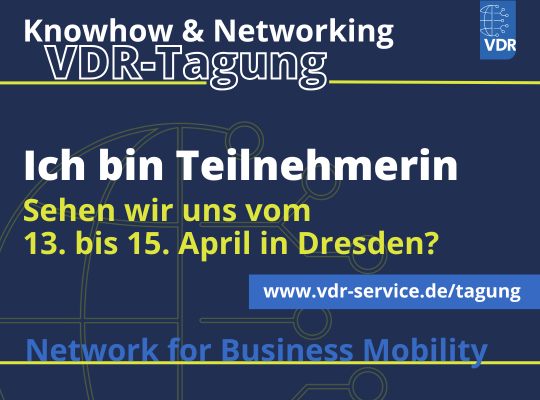 Bitte erwähnen Sie den VDR mit @VDR – Verband Deutsches Reisemanagement e.V. (nicht als Hashtag).