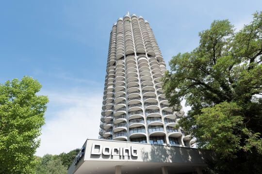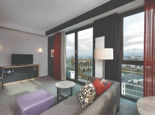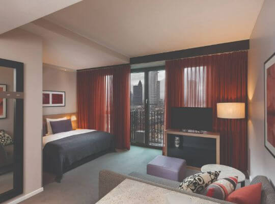 Das Leonardo Royal Hotel Frankfurt zählt zu den höchsten Hotels Deutschlands und bietet einen atemberaubenden Blick auf die Skyline. In unmittelbarer Nähe zum angesagten Stadtteil Sachsenhausen und dem Frankfurter Südbahnhof gelegen, ist es die ideale Adresse für Geschäftsreisende und Eventgäste.