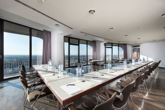 In über 110 Meter Höhe kann in vier Tagungsräumen in der 34. Etage getagt werden. Dabei genießen Sie einen einmaligen Blick auf Augsburg bis hin zu den Alpen.