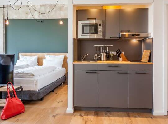 In direkter Nachbarschaft zu Gewandhaus, Oper und Universität erwartet Sie das Staycity Leipzig City Centre - Ihr Rückzugsort mitten in der Stadt. Unsere 322 stilvollen und mehrfach zertifizierten Apartments vereinen den Komfort eines Hotels mit der Unabhängigkeit eines Zuhauses. Jede Einheit ist mit einer voll ausgestatteten Küchenzeile, einem modernen Bad und einem bequemen Boxspringbett ausgestattet – perfekt für kurze oder längere Aufenthalte.