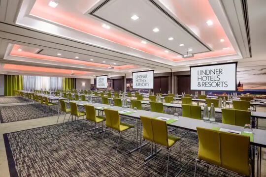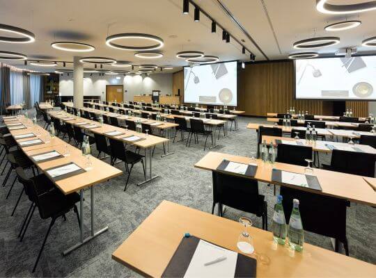 Für Tagungen und Events stehen 21 Räume mit über 1.000 m² Fläche bereit, ausgestattet mit modernster Technik und flexiblen Catering-Optionen.