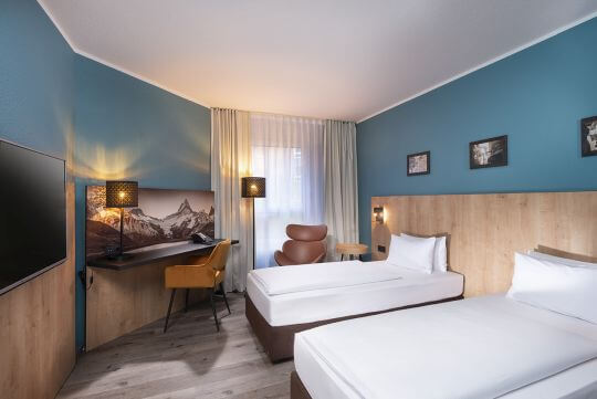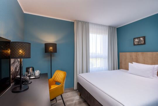 In unserem modernen Haus erwarten Sie 320 komfortable Zimmer in unterschiedlichen Kategorien, die mit schallisolierten Fenstern für Ruhe und Erholung sorgen.